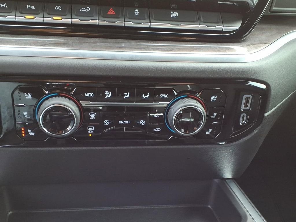 The exterior of the Silverado 1500 LTZ exudes a bold and commanding presence, with its sleek Black finish and chrome accents. Step inside, and you'll be greeted by a premium cabin that combines sophisticated style with uncompromising comfort. The perforated leather-appointed front seats, heated and ventilated for your ultimate enjoyment, provide exceptional support and luxury.